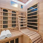 Vous pourrez profiter du confort d'un vestiaire et d'un coin salon doté d'un équipement de repassage, ainsi que d'une TV par satellite et d'une TV à écran plat avec des chaînes satellite. Il y a des conforts comme un bidet et des toilettes séparées fournis. Un sèche-cheveux et des draps de bain sont accessibles.